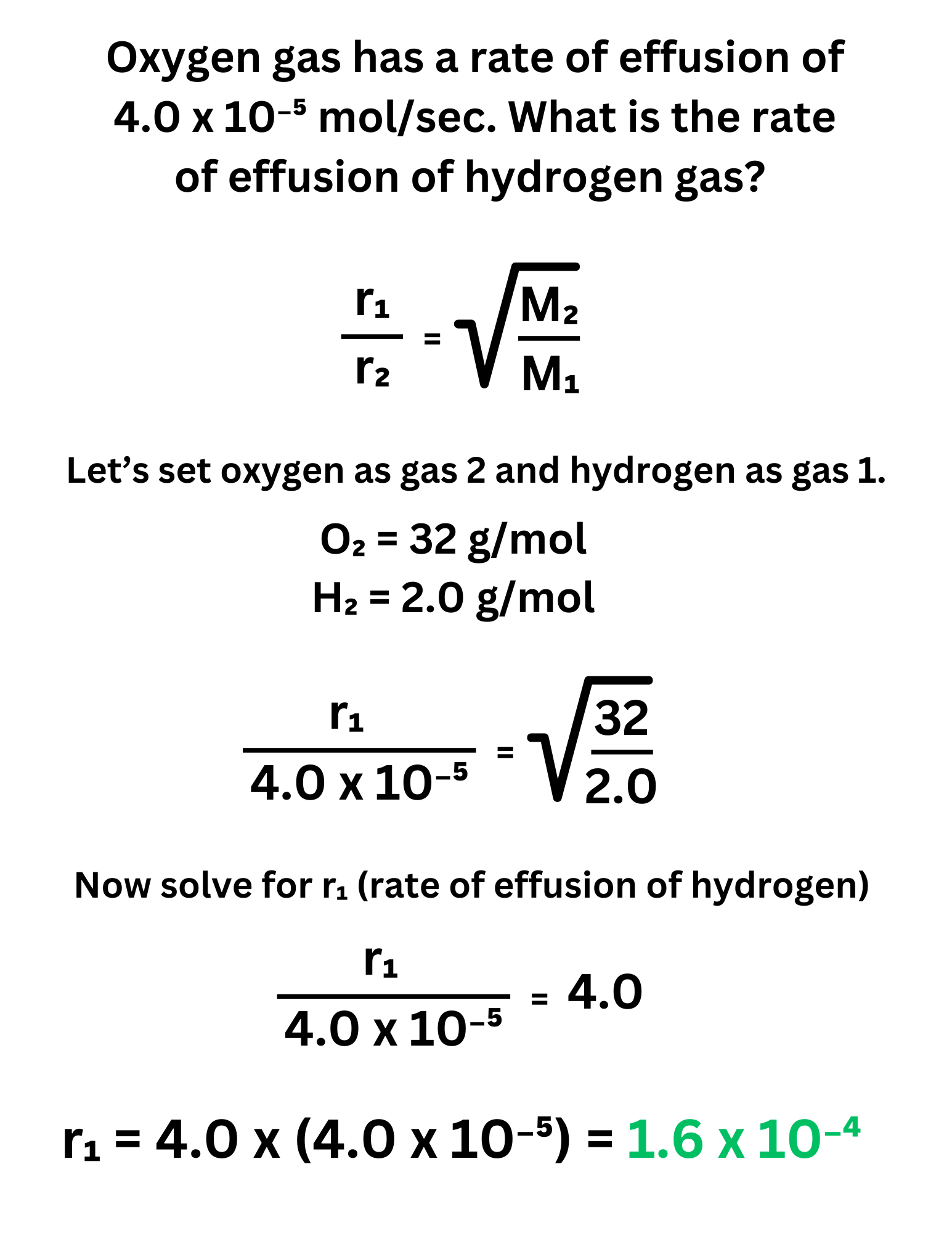 Oxygen gas has a rate of effusion of 4.0 x 10⁻⁵ mol/sec. What is the rate of effusion of hydrogen gas?