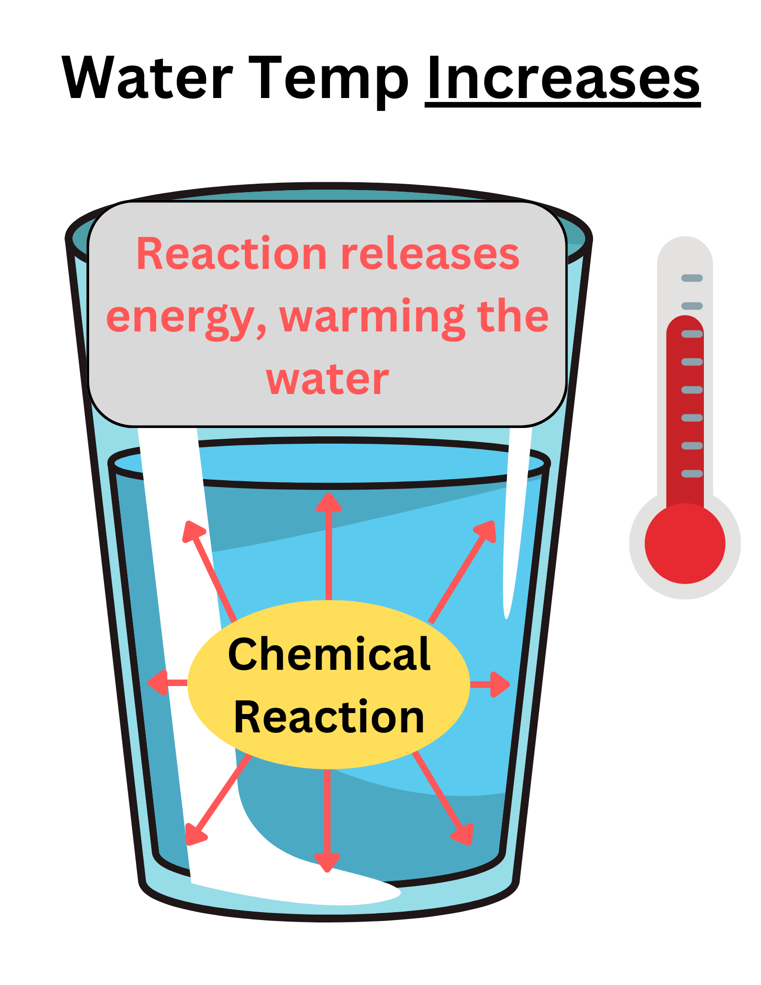 When a reaction takes place in water, if the water temp increases, the reaction is exothermic.